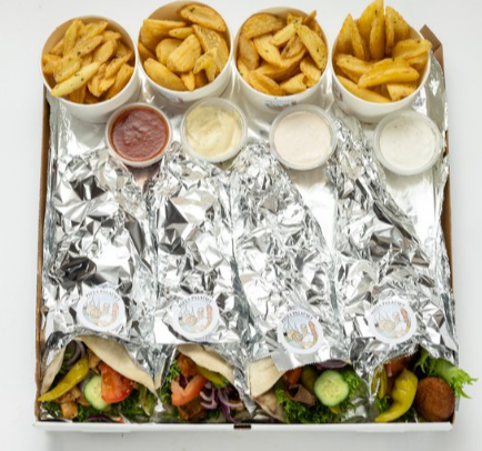 4 valfria rullar, 4 valfria såser, 4 pommes ingår och valfri 2 l läsk ingår.
